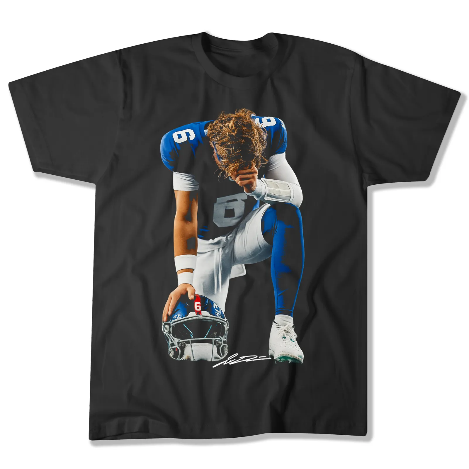 The future of New York Giants football has arrived and his name is Jaxson Dart. Available on a heavyweight tee in black and blue!